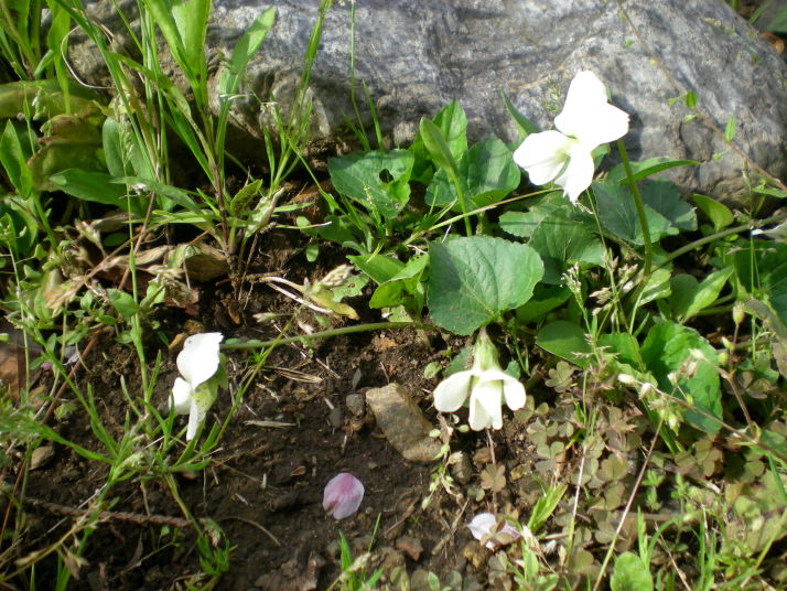 白はなのスミレを植えた記憶がないので、勝手に変異したか、どこからか鳥が種を持ってきてくれたのか。