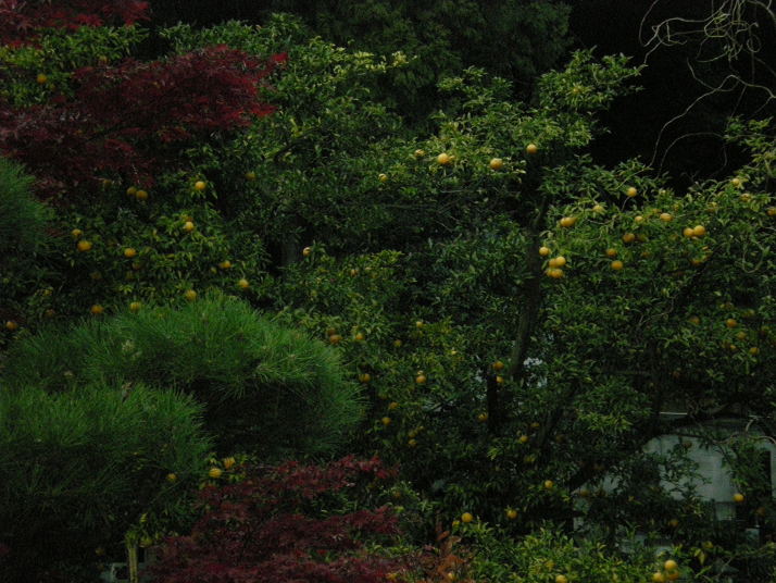 ゆずの古木です。今年は3年ぶりに実を付けました。このゆずの木の下にペットのお墓があります。