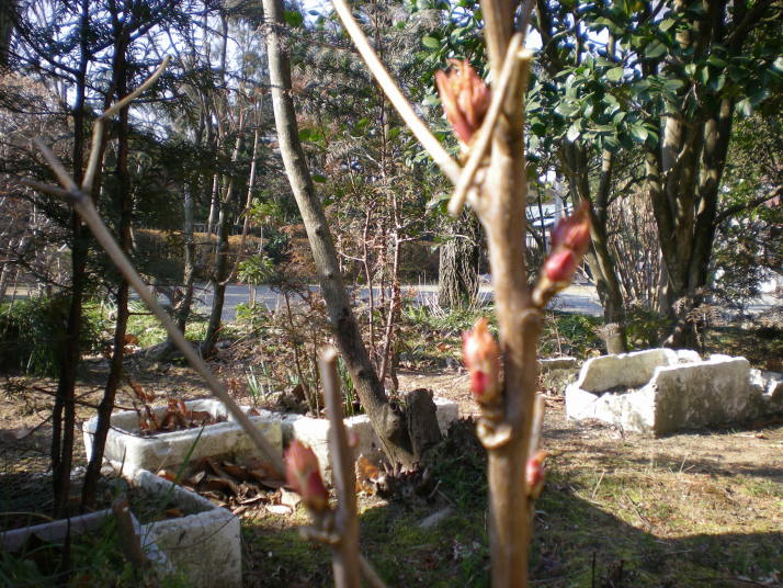 ボタンのつぼみが、厳しい寒さにもかかわらず動き出しています。春を感じさせるには充分ですね。