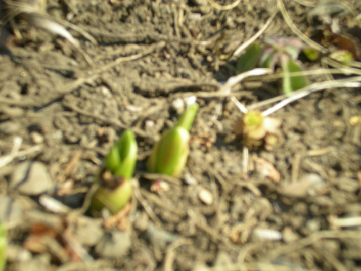 シランの芽が出てきています。私たちにとってはまだ冬なのですが、