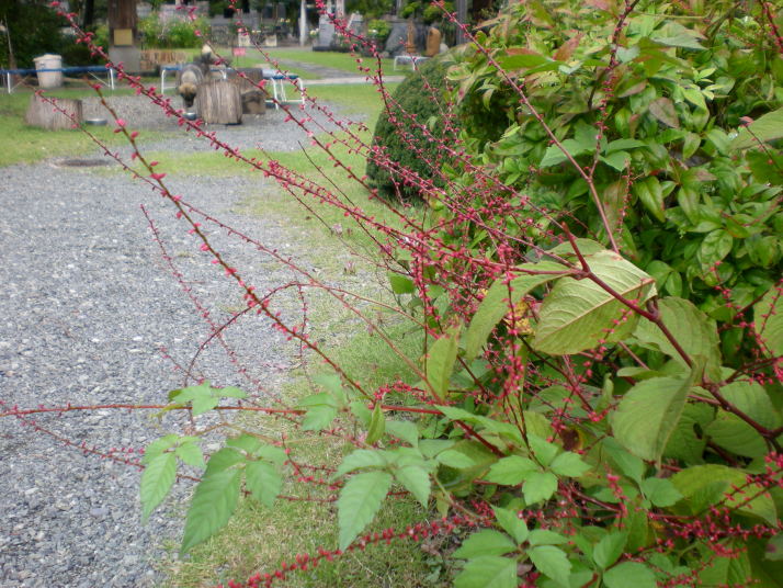 水引は紅白、境内では雑草と張り合って頑張ってくれています。